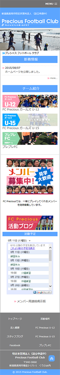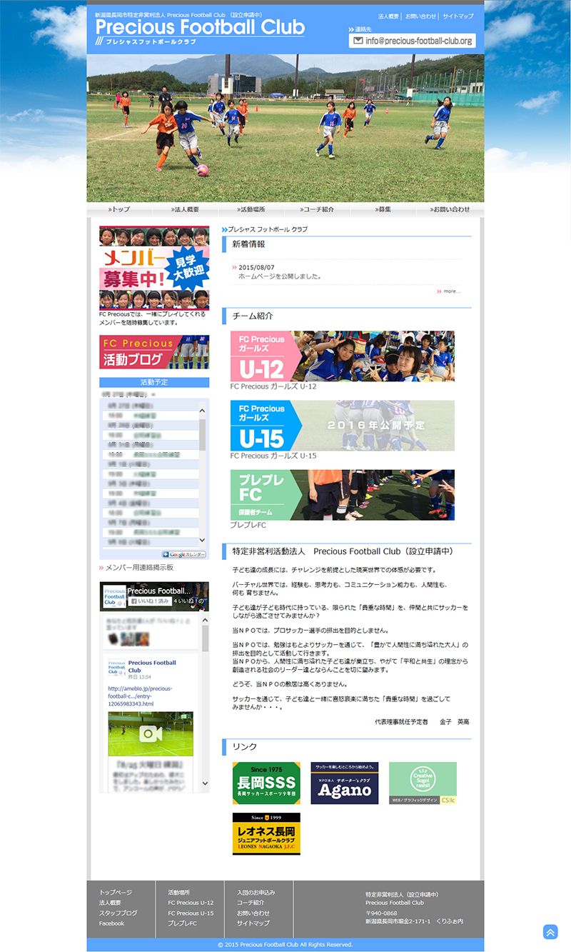 新潟県長岡市で活動しているPrecious Football Clubの公式サイトを制作させていただきました。